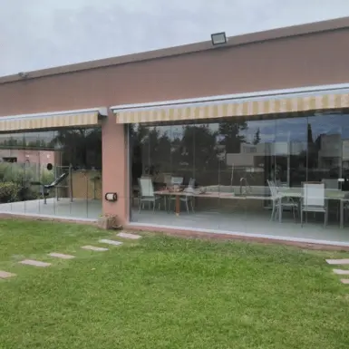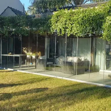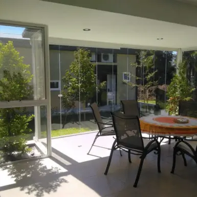 El vidrio templado de 10 mm, brindan protección frente al viento, la lluvia y el ruido, sin renunciar a la luz natural ni a la conexión con el exterior.
